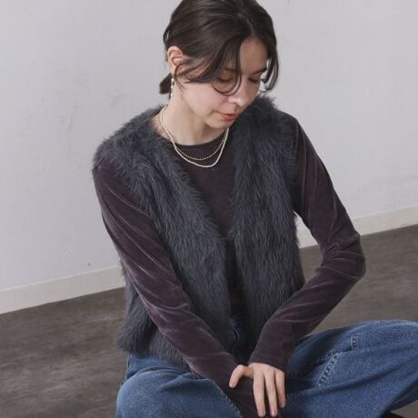 ・シャギーの毛足感がかわいいニットベスト。