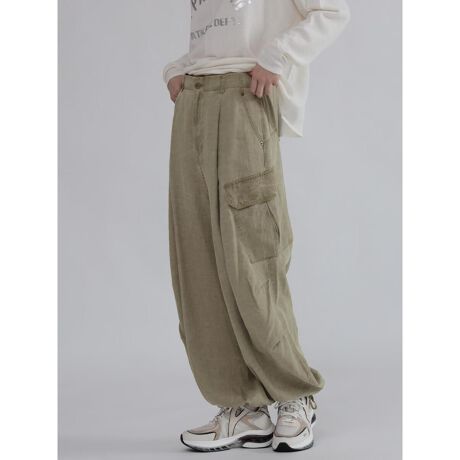 サイドに入ったタックと斜めに配した大きめポケットが立体感を生み、ラフな中にもデザイン性をプラス。