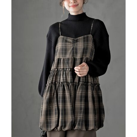 ふんわりとしたバルーンシルエットが大人ガーリーな装いに。