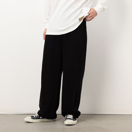 春夏で展開していた裏毛パンツより裾幅を出して今のトレンドに合うワイドシルエットにブラッシュアップしました。