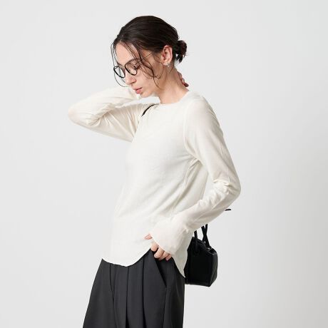 適度な透け感とラウンドヘムデザインが、レイヤード時にもさりげなく存在感を発揮。
