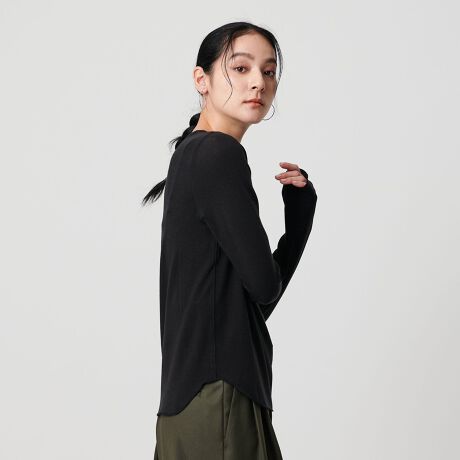 適度な透け感とラウンドヘムデザインが、レイヤード時にもさりげなく存在感を発揮。