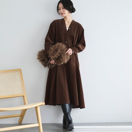 ラクなのにキレイ見えなコーデュロイワンピース