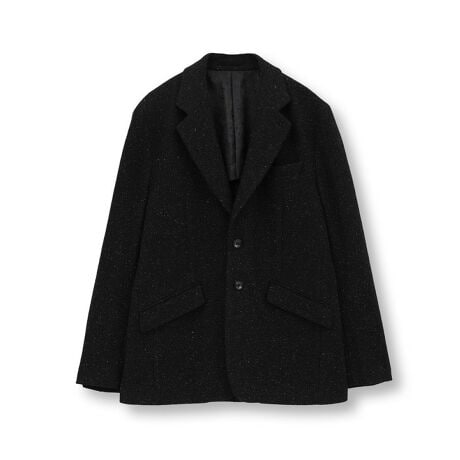 シルクネップを散りばめたウール糸を経編機で丁寧に編み上げた、立体感のある絡み素材のジャケットです。