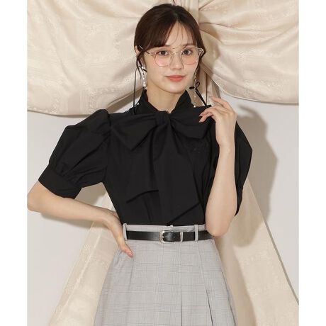 パール&刺繍で品よく映える、大人フェミニンブラウス【Design】・上品なモノグラム刺繍が目を惹く、クラシカルな印象のブラウス♪・首元のリボンタイは、正面で結ぶタイプでアレンジを楽しみつつ、後ろは縫い付け仕様でズレにくいのがポイント!・フロントにはオリジナル刺繍を施し、さりげないブランド感を演出。・パールボタンをあしらった袖口と前立てが、フェミニンなアクセントに。・タイトスカートやジャンスカにインするだけで、きちんと感のある上品コーデが完成◎・通勤やお出掛け、イベントなどのきれいめシーンにぴったりの一着です。【Fabric】・軽やかでシワになりにくい素材を使用しています。・ご自宅でお手入れが出来るのも嬉しいポイント♪・ホワイト、ブラックの2色展開となります。【Care】洗濯機洗い可能