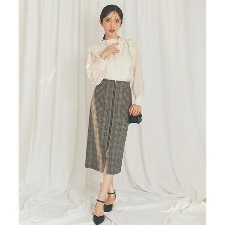 【クラシカルなチェック柄×モードなフロントジップが洗練された印象に引き立てるタイトスカート】【Point】・フロントに大胆に施されたジップと大きめポケットがポイントのチェック柄タイトスカート。・ポケット部分はバイアスにすることで腰回りをすっきりと見せます。・クラシカルなチェック柄に程よいスリットをプラスすることで、上品さと抜け感を両立しました。・ヒップラインを拾いにくいIラインシルエットがスタイルアップを叶え、オン・オフ問わず活躍するアイテム。・ジャケットやブラウスと合わせればきちんと感のある通勤スタイルに、ニットと合わせればこなれた休日コーデにもおすすめです。・日本ならではの丁寧な縫製技術で作られた、美しい仕上がりが自慢のアイテムです。・ご自宅でのお手入れ可能な、イージーケアなところも嬉しいポイントです。ケア方法:手洗い可能透け感:なし裏地:あり伸縮性:なし(ウエスト部分:後ろゴムあり)光沢感:なし生地の厚さ:中肉
