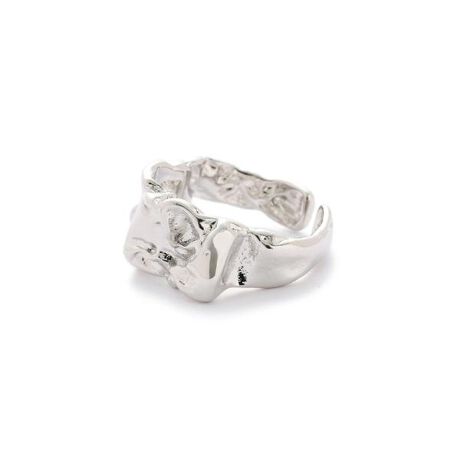 溶け出した金属のような独特なテクスチャーが目を引くリング。