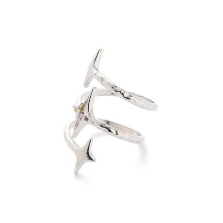 星のようなエッジを効かせたシルエットにセンターには淡く輝くカラーストーンを配置したデザイン。