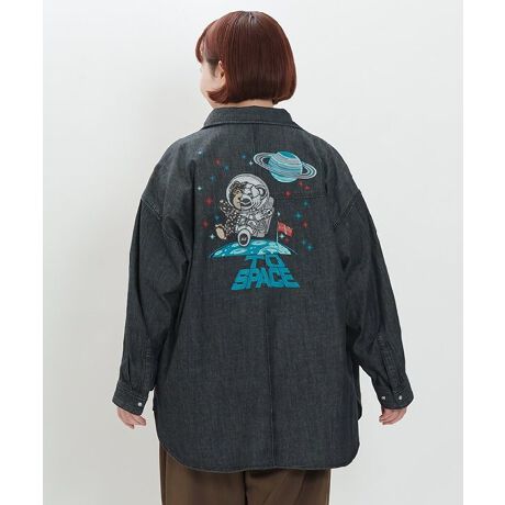 バックスタイルに颯爽とベアロイドが帰ってきた刺繍を入れたデニム素材のシャツです。