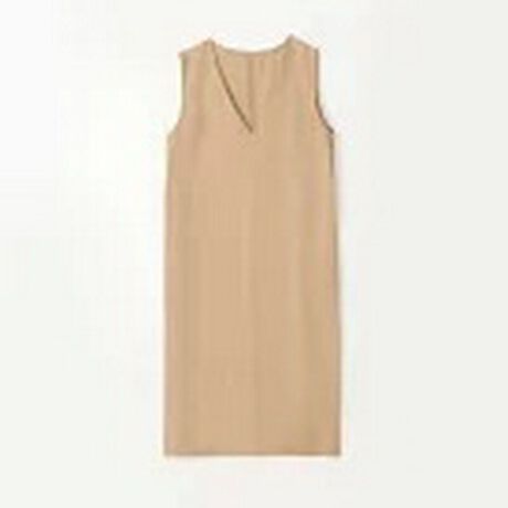 すっきり見える深めのVネックと、シンプルで落ち感のあるIラインシルエット。
