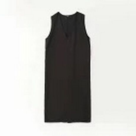 すっきり見える深めのVネックと、シンプルで落ち感のあるIラインシルエット。