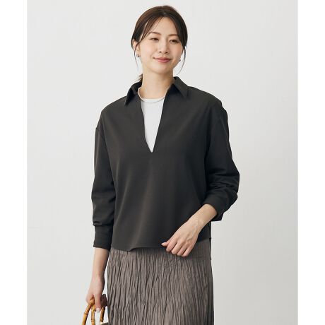 深めネックで大人っぽさを演出!シーズンレスに活躍するスキッパーカットソー