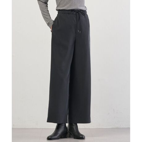 ■デザイン肌離れがよく、脚のラインを拾いにくい美しいシルエットのワイドパンツ。程よい太さにこだわり、リラックス感のある穿き心地と、きちんと見える表情を両立しています。ウエストはゴム仕様でスピンドル付き。快適さがありながらも、きれいめなブラウスやニットとも好相性です。スニーカーでカジュアルダウンしても素敵に決まる、着回し力のある1本です。裏地無しで、さらっと着用出来ます。