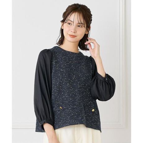 ■デザイン一枚でレイヤード風に見えるプルオーバーです。身頃部分はツイード調のジャージー素材、袖には非常にソフトな風合いのポリエステルブロードを使用しています。着心地抜群・きちんと見えて硬すぎないので、幅広いシーンで活躍します。■素材通常のインレイツイードは12Gが大半ですが、それを20Gで編んでいることが特徴。その作用で生地がコンパクトになりハリコシのあるツイードになっています。番手の太いノット糸はハイゲージで編むことが困難であるため、非常に希少性のある素材に仕上がっています。リング糸の凹凸感も特徴的です。・後ろファスナーあり・水洗い可■サンプル撮影商品画像の商品はサンプルです。実際の商品とはサイズや色味、素材、デザイン等の仕様が若干変更になる場合がございます。■カラーについては、可能な限り実際の商品に近いカラーで撮影をおこなっておりますが、照明の関係により実際の製品とは色味が違って見える場合があります。またパソコン・スマートフォンなどの環境により、若干製品と画像のカラーが異なる場合もございます。現物と画像のカラー差異については返品理由となりませんので、予めご了承ください。■サイズ表記はあくまで目安となります。
