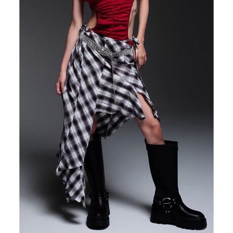MITSUKI/ミツキ/CHECK ASYMME SKIRT