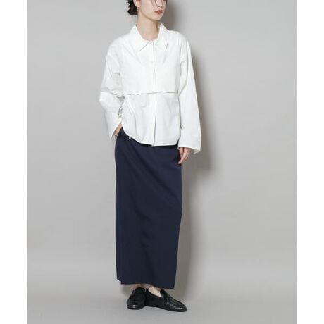 丸みを抑えたマニッシュでハンサムな印象のロングスカート。長めの丈感とスーツライクなデザインで、女性らしさがありながら格好良さも感じられる大人な印象の一着です。