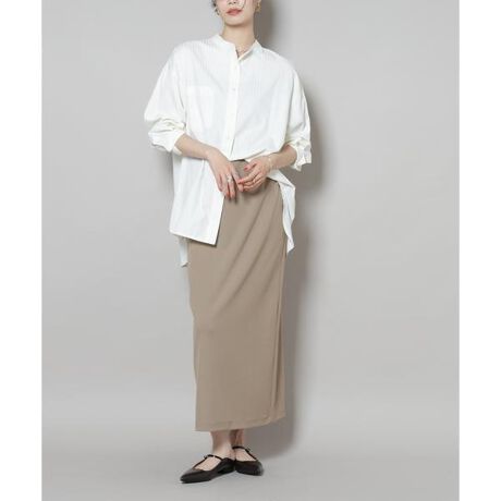 タイトなIラインシルエットが上品な印象のナロースカート。さらっとした肌触りとハリのある素材が上品な表面感で、綺麗めな印象を与えてくれるサカリバカットソー素材で仕立てた一着です。