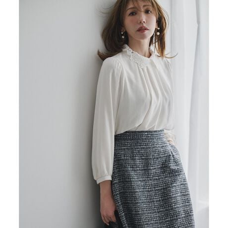 レース襟取り外し可能な2WAY仕様!ドレープ感が美しい大人上品な1枚映えブラウス