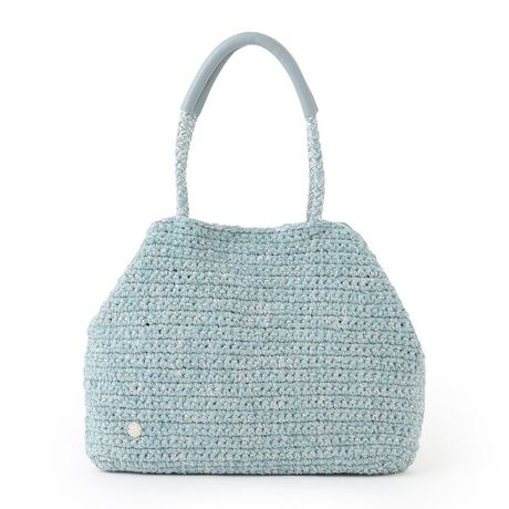 [型番:U1109618__]ポリエステルのモール糸とシルバーのポリプロピレンコードを合わせて編み上げました。絶妙な色と編みたてたショルダーがポイントのタウン向けトートです。コーディネートのアクセントとして活躍します。