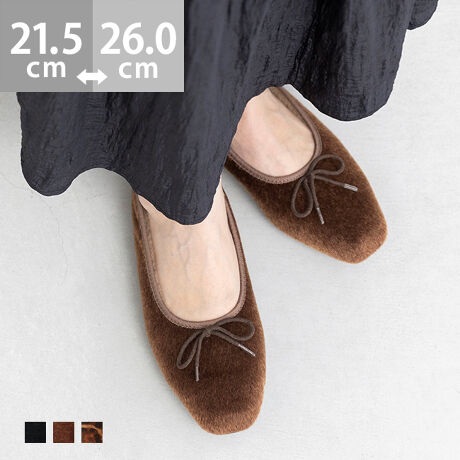 大人可愛いスクエアトゥハラコ調バレエシューズ』