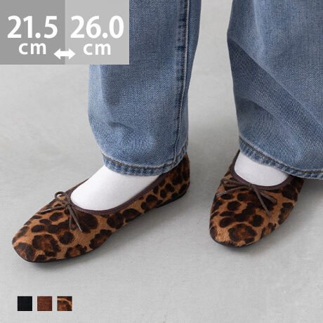 大人可愛いスクエアトゥハラコ調バレエシューズ』