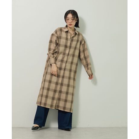 長袖 シャツ チェック オンブレ トレンド 秋 25AW ロング丈 体型カバー ゆったり
