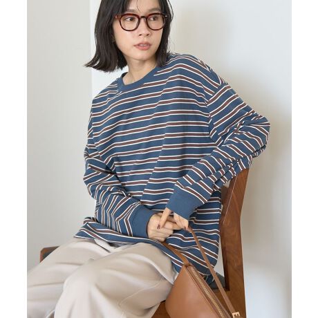 レトロな雰囲気が今年らしいマルチボーダーロングTシャツ。ベーシックなシルエットとさらりとしたコットン素材でメイントップとしてはもちろんインナーとしても活躍してくれます。裾をボトムスインすることですっきりまとまり、トレンドライクなスタイリングを後押し。絶妙な色合いのボーダーデザインがコーディネートの主役にぴったりな注目アイテムです。透け感[なし]