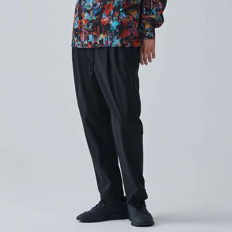 ■サイドシームを前側に振り、裾口にはコードゴムを配し、サイドから後ろにかけて絞れるジョガーパンツ仕様になります。