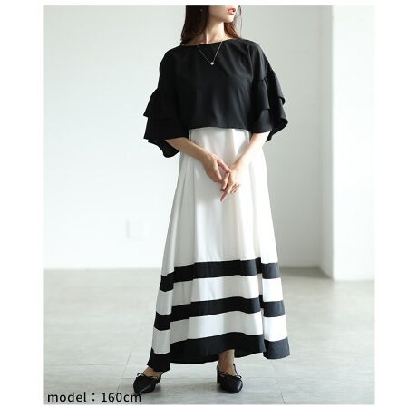 【セットアップ】 ワンピース トップス カットソー ブラック ホワイト 5分袖 ロング セット 2点