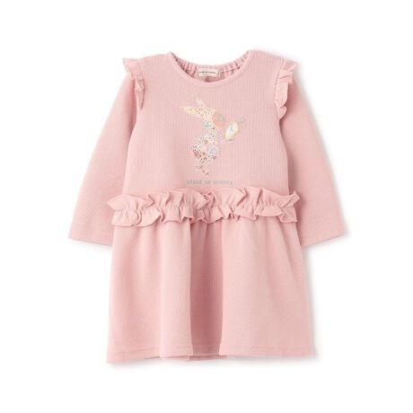 時計を持ったウサギのアップリケが愛らしいワンピースです。