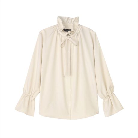 衿・カフスにフリルデザインをあしらったフェミニンな一枚。