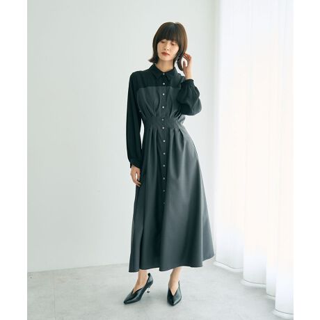 シャツとベアワンピースをレイヤードしたようなドッキングワンピース。