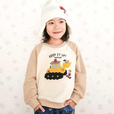 触って楽しいサガラ刺しゅうのモチーフがカワイイ男の子用長袖トレーナー。
