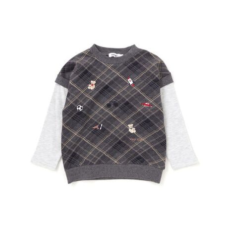 秋冬らしいチェックがおしゃれな男の子用長袖トレーナー。