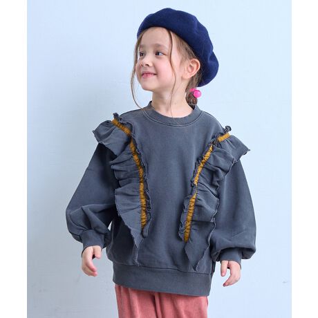 肩から胸元にかけてフリルをあしらい、動くたびに揺れる華やかなデザインです。