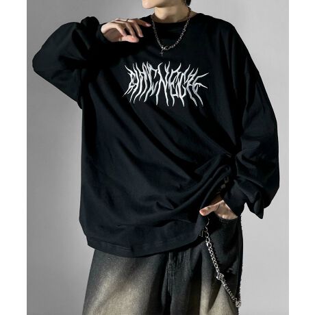 近年トレンドのメタルロゴを刺繍でY2K、グランジ感を表現した斬新な1枚。