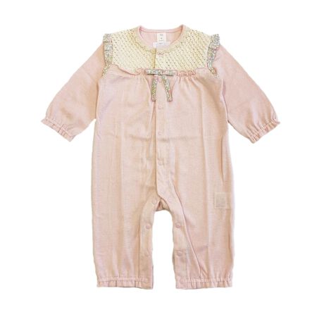 オーガニック吊天竺を使用したカバーオールです。人気のリバティプリントをあしらうことで、かわいらしさが引き立ちます。