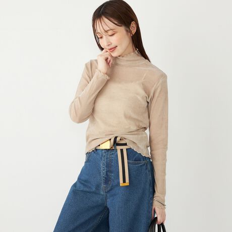 ベロア調のフロッキー素材が秋らしく、コーデに季節感をプラスしてくれる1枚。