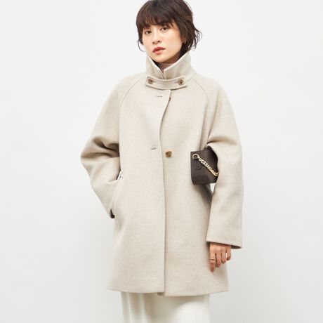 ・高品質なサスティナブルウール素材(リサイクル原料)を使用した二重織のハーフ丈のウールコート