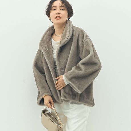 ・あえて手首が見える少し短めの袖丈で、ファーでもすっきり着こなせるバランス