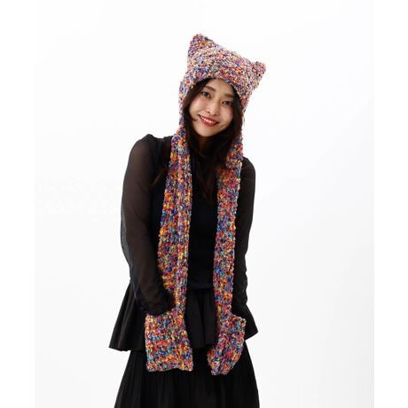 ポコポコとした表情のある糸を使用したニットカグール。被ると猫耳のかたちになる可愛らしいアイテムです。首の後ろにフードのように垂らして使用しても暖かい冬の防寒アイテムです。手洗い可能。