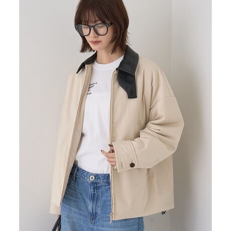 フェイクレザーの襟がアクセントになったこちらの一着は、