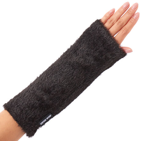 手袋と重ね着けがかわいいスタイル。トレンドのヘアリー感あるシャギー素材が特徴です。