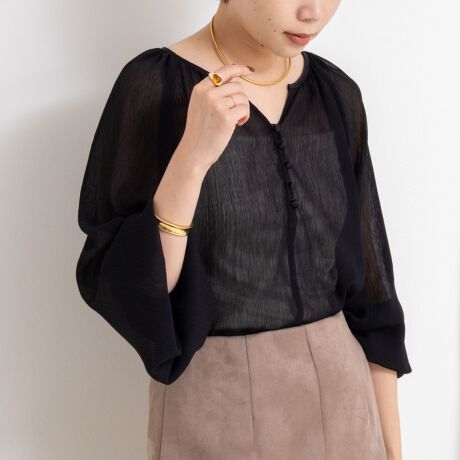 ・シルクのような風合いを目指し、糸の選定や加工にこだわった楊柳素材を使用したブラウス