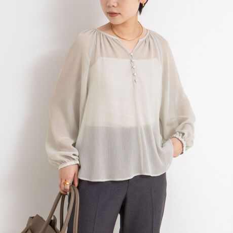・シルクのような風合いを目指し、糸の選定や加工にこだわった楊柳素材を使用したブラウス