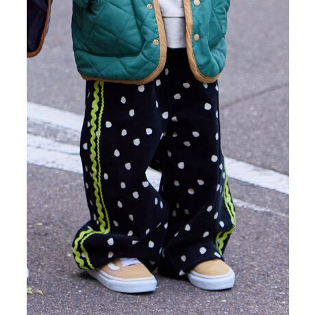 やわらかなコーデュロイ素材にポップな柄をのせたデザインパンツ。