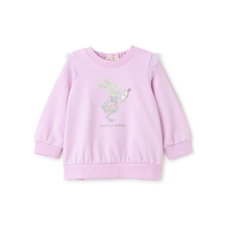 時計を持ったウサギのアップリケ刺しゅうがポイントのトレーナーです。