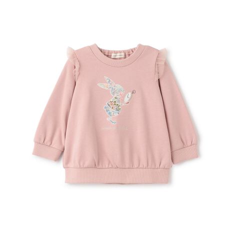 時計を持ったウサギのアップリケ刺しゅうがポイントのトレーナーです。