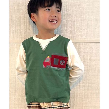 [型番:11344005]【綿100%】SKAPE(エスケープ)はみんなの好き!を集めたデザイン。ポケット部分が乗り物になっているロンTです。シンプルデザインなのでどんなコーデにベビーサイズは肩開き仕様です。