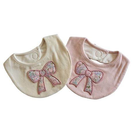 赤ちゃんのヘビーアイテムの1つ、スタイです。何枚あっても困らないと言われる必需品の2つです。人気のデザイン、リバティプリントを使用したモデルです。